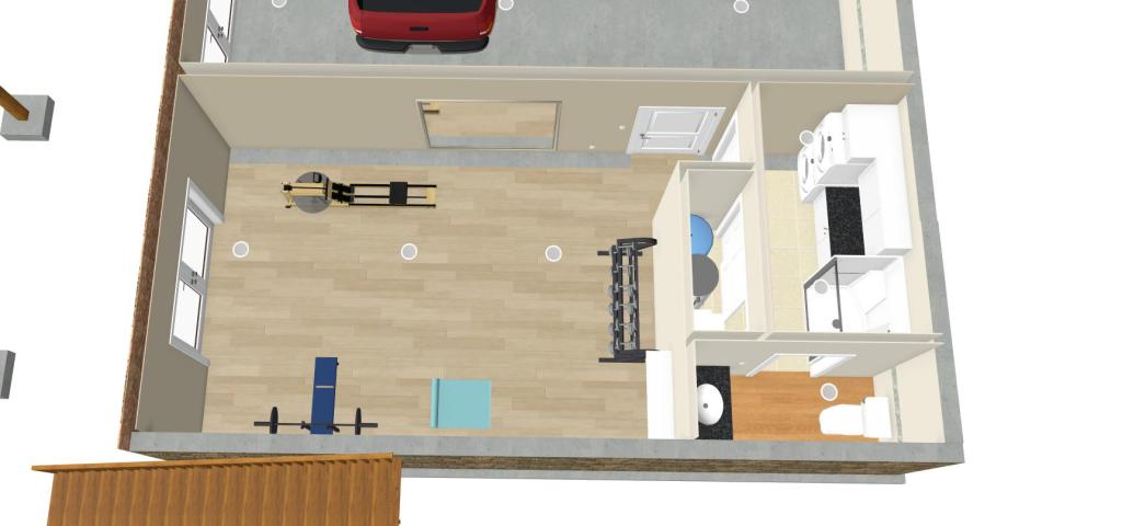 The Winchester is an ideal bachelors pad. Room in the garage for the toys and tools. Laundry and bath are connected to the fitness room.